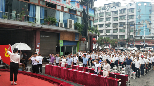 | 胡市社区党委书记文祖军带领党员重温入党誓词 |