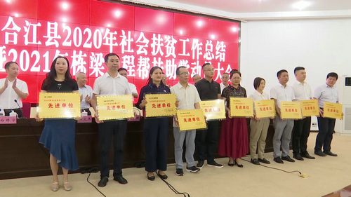 会议表扬了19个在2020年社会扶贫工作中表现突出的先进单位,爱心企业和个人现场进行了捐赠。
