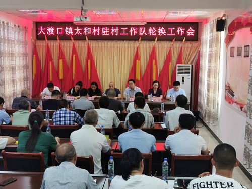 四川新闻网消息(邹燕岭 记者 程海英)7月19日,纳溪区大渡口镇太和村驻村工作队轮换工作会在太和村党群服务中心召开。会议由太和村党总支书记、村委会主任钟传杰主持。区法院党组成员、执行局局长肖大鸣,区审计局党组成员、副局长刘鑫,区税务局党组成员、副局长龙逦,大渡口镇党委副书记、纪委书记肖林,大渡口镇联村工作组,原驻村工作队队员和全体村社干部参加了会议。