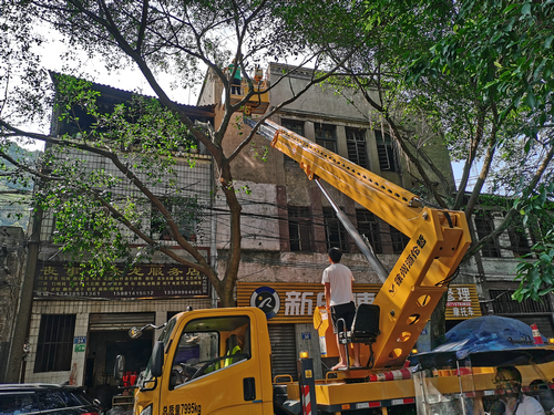 了解情况后,下大街社区纪委书记肖铃向曾某解释了安全隐患排查和消除安全隐患的重要性,并与曾某一同到房屋现场查看。该房屋是上世纪40年代3层小楼,因房屋多年无人居住,内设楼梯全部垮掉,人是无法从房屋内部上到顶楼排危。肖铃与纪委委员汪运全商量后,决定借用园林剪枝专业机器进行排危;并在现场采取了张贴安全警示、拉起安全警示绳等措施,提醒过往居民绕行。