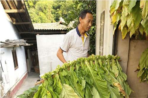 “今年烤烟大丰收,烤烟房一直不间断运转,目前土地里至少还有好几房烟叶需要马上进行烘烤。”少数民族烟农陶强喜悦地说:“这段时间,家里人每天晚上对烤烟进行扎把都要忙到深夜才能休息,一家人每天除了在烟地里采摘烟叶,就是烤房群里烘烤烟叶和对已经烘烤结束的烟叶进行分级扎把”。