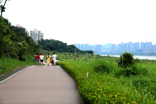 “以前哪有这么安逸哦,之前又脏又臭,大家都不愿意过来。” 石樑社区居民苏邦群感慨说,老鹰坵湿地公园修建好以后,她每天都要约上朋友一起来散步聊天。“空气清新,路面也修得好,又漂亮又安全。”苏邦群说。