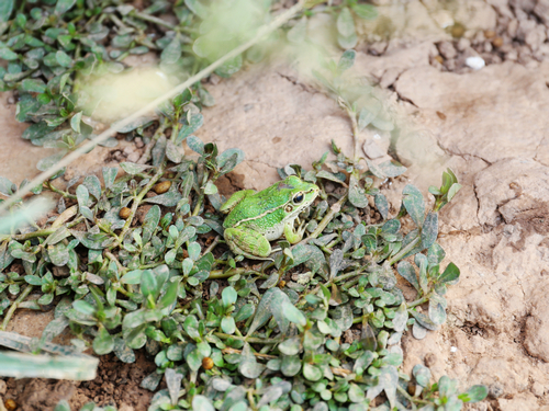走进鹏泰生态养殖基地,30亩稻田被丝网隔成一个个小方块,稻田里随处可见一只只绿色的黑斑蛙在嬉戏打闹,活跃的黑斑蛙们在稻田里不停跳动,时而稻下游泳,时而岸上晒太阳,到处呈现出一派稻蛙和谐共生的景象。据曹洪浩介绍,这种“稻蛙共生”种养模式,是种植业与水产养殖业有机结合的一种仿生态种养模式,能实现水稻种植和青蛙养殖的组合开发利用,实现“一地多用,一地多收”。