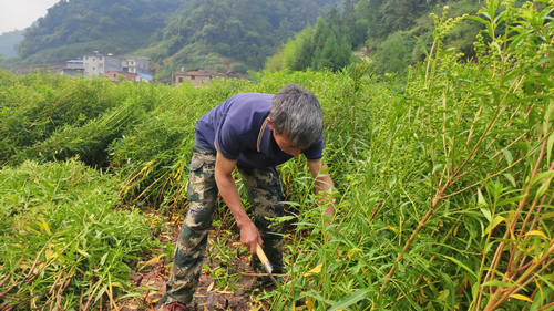 种植田里,村民正在忙着采摘赶黄草花和收割赶黄草茎杆。赶黄草也叫扯根菜,属古蔺县原产特有品种,是苗族中药的典型代表,在民间被称为“神仙草”,对肝损伤具保护作用,能减低饮酒及药物对肝脏的损害,并对多种肝炎有显著的治疗作用。赶黄草全草入药,其花和叶还可以制成茶叶、凉茶饮品。