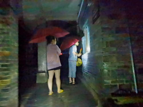 长征街社区党员干部一宿没睡,连夜对地灾点进行巡查监测,挨家挨户动员45户地灾点居民做好安全转移准备工作。