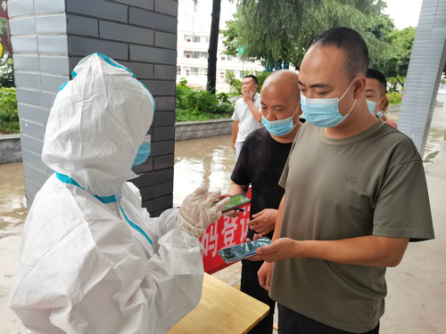演练现场共划分出测温验码区、信息登记区、采样区及异常反应处置区等,严格按照体温测量、排队登记、核酸采样等步骤有序开展演练,半小时两个工作台累计采样160余份。