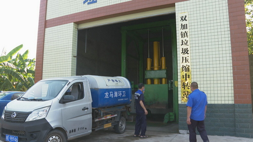 从2020年7月起,龙马潭区全域推行“环卫一体化模式”,通过市场化的方式实现垃圾收集、转运、无害化处理一体化。双加镇垃圾中转站,辐射全镇6个行政村,承担3700多平方公里的生活垃圾暂存。每天环卫工人到各个点位用勾臂车将垃圾收集后,转运至垃圾中转站进行压缩,再用直运车运抵城南中转站。