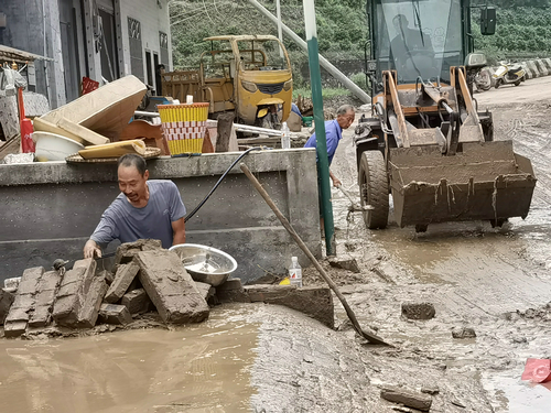 10日早上身体稍有好转,便主动带工具到受灾群众家中参与清淤抢险工作。