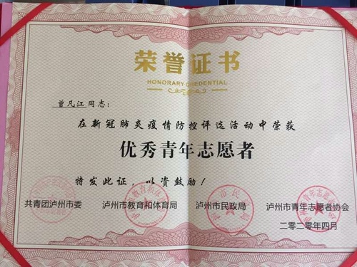 如今的曾凡江,先后获评“蔺州好人”“泸州市优秀共产党员”“泸州市抗疫优秀青年志愿者”。他将靠自己的勤劳与刻苦、学习文化知识的信念以及助人为乐、锲而不舍的奋斗精神,书写着自己的感恩人生。