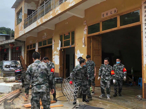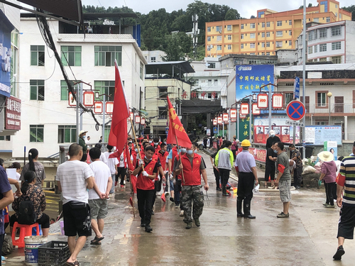 场镇新街,罗洪江的五金店已恢复正常营业。回忆起灾后这段日子,他说得最多的还是对志愿者的感谢:“清淤泥、扫垃圾、恢复电力通信,短短几天里生活基本恢复正常,我要特别感谢来自皇华的党员志愿者!”