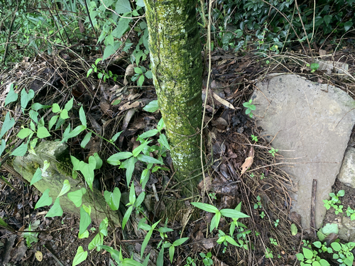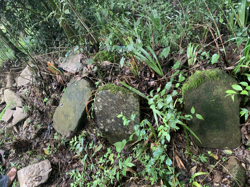 大石板位于向阳村二组一处偏僻的山林边上,海拔1000多米,在路边沿着田坎下去的一块宽阔田地边,有个微微凸起石堆,这就是六名解放军战士的长眠地。