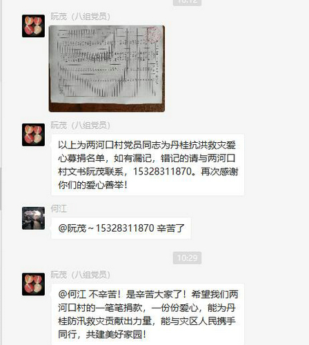 灾害无情,人间有爱;一方有难,八方支援。两河口村党支部与村民对灾区充满力量与爱心的支援值得大家赞扬与学习,愿受灾地区早日重建美好的家园,受灾群众早日恢复灿烂的笑容。