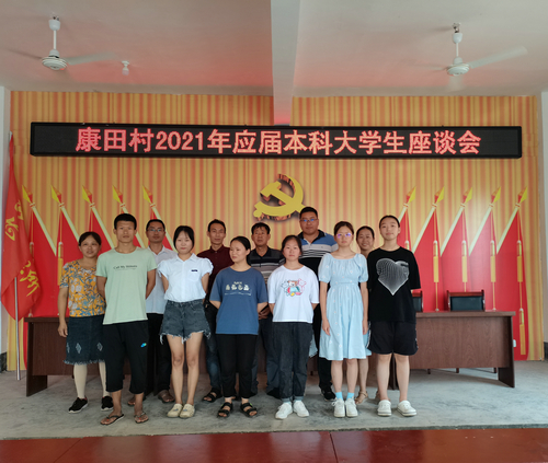座谈会上,康田村村委向学生们通报了村上的发展规划,同时对即将步入心中理想的大学表示真诚祝福和深厚的期望,希望他们学到更多的知识,将来回到家乡把家乡建设的更加美好。
