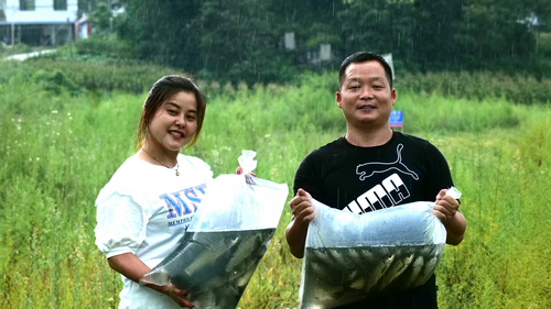 海塘湖位于泸州市古蔺县大寨苗族乡大寨村,湖阔水清,生态优美。投苗时天空下着大雨,为及时将长途运输过来的鱼苗投入湖中,水产养殖户唐明荣来不及等待雨停,便快速地将100余万尾黄辣丁、花鲢鱼、白鲢鱼、草鱼投入湖中,伴着阵阵大雨哗啦声,一条条鱼苗跃入湖中,欢快游向远方。