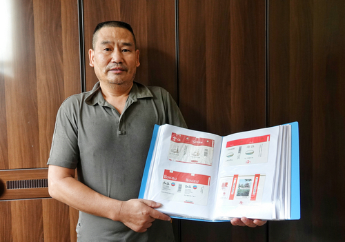 文件夹里存放着折叠整齐的烟标,不仅有各种各样的品牌,还有同一品牌系列下的不同图案。徐邦林说,由于烟标品种太多,有的是按年份、生产厂家分类,有的是按建筑、山水、动植物等系列分门别类归纳,以利于平时查找或亲朋好友观赏。