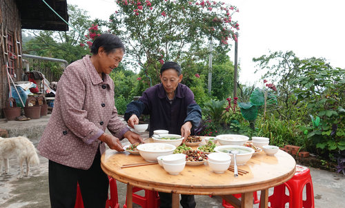 在村民郑存中家的小院里,番茄、丝瓜、茄子等蔬菜错落有致,整个庭院皆是绿意盎然、硕果累累。67岁的郑存中靠着房前屋后种植的蔬菜,给前来游玩的游客做农家菜,一年下来能挣上万元。一片片整齐的菜园美化了村庄,也带动了枣林村以庭院经济发展休闲观光农业的步伐。