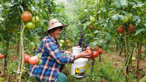 金秋时节,走进枣林村便能看到红彤彤的番茄挂满枝头,村民们正忙着采摘,一派丰收景象。“我们村种出来的番茄不光味道好,产量也高,种一亩番茄能摘上万斤,商贩每天上门来收购,一季下来能卖三万多块钱。”正在忙着采摘、装箱的种植户胡显兰告诉记者,在枣林村,跟自己一样尝到庭院经济甜头的村民不在少数。