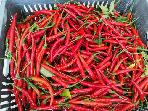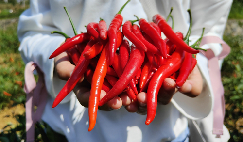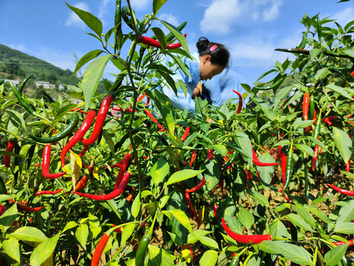 “大家快点摘,争取上午就把已经红了的朝天椒摘完,下午好过秤收钱。”8月29日一大早,王先武就来到小米椒乡贤产业示范园,组织村民采收成熟的朝天椒。村民们自顾低头忙碌着,一会儿功夫,背篓里便装满了朝天椒。