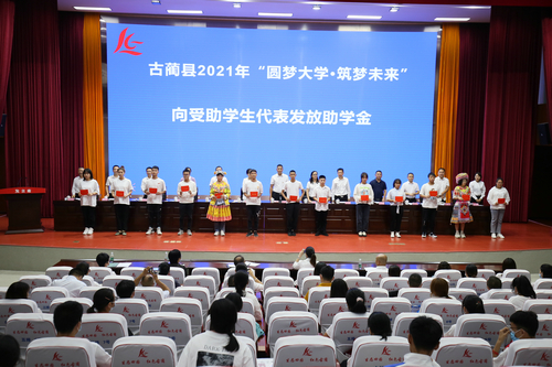 发放仪式上,古蔺县委教工委书记、县教体局党组书记、局长罗富华就2021年“圆梦大学·筑梦未来”助学工作开展情况作报告,39名受助学生上台领取助学金,爱心企业代表四川省顺通实业有限公司副总经理谢河灵、古蔺县扶贫基金会副会长赵贤毅对孩子们提出了情真意切的嘱咐。