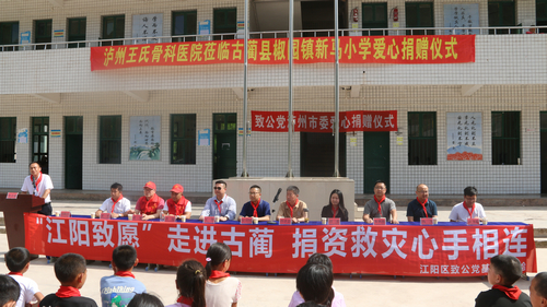 四川新闻网消息(李静杰 记者 程海英)近日,致公党泸州市委携手泸州王氏骨科医院赴古蔺县椒园镇新马小学开展爱心捐赠,为受暴雨灾害的师生捐赠生活物资。致公党泸州市委专职副主委兼秘书长殷君国、泸州王氏骨科医院党支部书记、院长王华、古蔺县政协副主席曹洪忠等市县相关领导出席捐赠仪式。