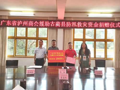 四川新闻网消息(张超 记者 程海英)9月6日,广东省泸州商会援助古蔺县防汛救灾资金捐赠仪式在古蔺县工商联会议室举行。广东省泸州商会会长童显权、古蔺县人民政府副县长梅猛出席,县工商联、县红十字会负责人参加捐赠仪式。
