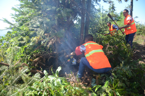 到达演练现场后,就近设立森林防火临时指挥部,按照应急预案分工和要求,从“发现火情、报告火情、组织人员安排分工”到“实地扑救灭火”等程序进行实战演练。