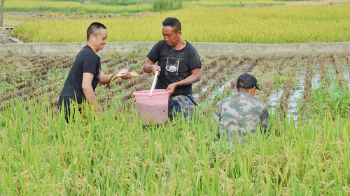 观文镇民乐村鱼稻共生项目,让水稻提质,水产增收,达到了“一水多用,一田双收”的目的。这种模式利用鱼和水稻相互依存、互利共生的生态循环关系,实现了化肥农药零投放,也成为了其先天优势和核心竞争力所在,所产的稻谷售价是普通稻谷的2倍左右。