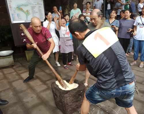 中秋打糍粑、吃月饼是古蔺由来已久的习俗,听说要举办打糍粑比赛,居民们热情高涨,踊跃报名参加。