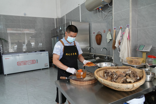 邱勇是头道河村乡贤人士,因看好家乡优质的山羊品质选择回乡创业,有着多年餐饮经验的他烹饪出来的羊肉鲜甜、不膻不腻,非常受消费者的青睐。对于邱勇来说,回乡创业既可以照顾家人,又可以增加收入,这让他非常满意。