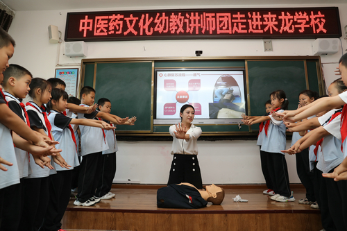 四川新闻网消息(杨尚威 记者 程海英)9月22日,一场别开生面的医学知识讲座在泸州市龙马潭区来龙学校开展,来自西南医科大学附属中医医院的医护人员对学生们进行了讲解了传染病预防、防灾避险、应急救护和情绪管理医疗知识培训。学生们在医护人员的带领下进行中医互动体验、体质辨识、太极拳练习等活动,通过生动活泼的中医药宣传教育,在孩子们心中植入中医药的文化基因,积极引导他们认识中医药、热爱传统文化。