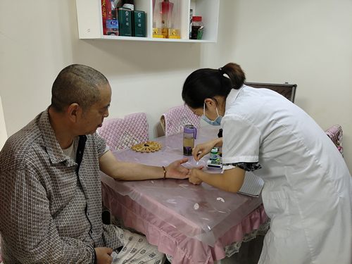 上午关口社区连同莲花池道社区卫生服务中心的家庭医生,为5名残疾居民提供上门体检活动,医生入户为其测量血压、血糖、心跳、检查脚背骨骼处是否有糖尿病等相关疾病。黄平海是一名残疾军人,在接受体检时说道:“感谢社区对我的关心,感谢党没有忘记我。”与此同时还为残疾人王生富建立了档案。