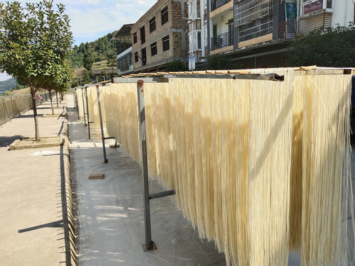 四川新闻网消息(李静杰 记者 程海英)近日,记者慕名来到位于古蔺县椒园镇杨柳湾的阎氏手工挂面作坊,映入眼帘的作坊面积不大,但干净清爽,一杆杆制作完成正晾晒的挂面散发着阵阵面香。由这里生产出来的挂面工艺独特、无任何添加剂,水煮后口感顺滑、劲道有营养,深受消费者的青睐。