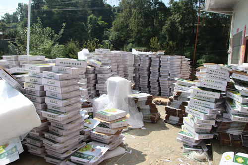 在老马村种植大户、党员、乡贤张体全的家中,院子里堆放着满院子的包装盒,屋子里堆满了刚从树上采摘回来的新鲜猕猴桃,三五成群的人们正在忙着筛选、装箱。