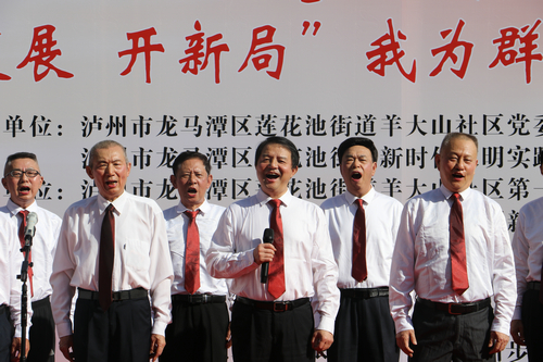 四川新闻网消息(梅清平 记者 程海英)“李大姐,我们早点去买菜,一会儿小区门口有表演,我们一起去看看。”广泽上城小区居民饶大姐给身边同行的邻居说。9月29日,龙马潭区莲花池街道羊大山社区在广泽上城小区大门处开展“党群共筑同心梦、家国齐庆话重阳”庆祝活动。该活动由羊大山社区和莲花池街道新时代文明实践所主办。有300多名居民、演职人员参加了活动。