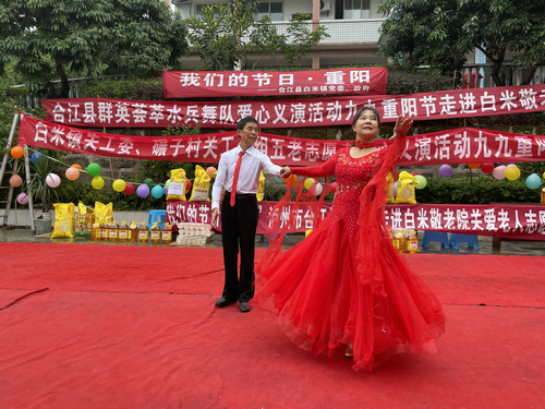 活动现场,白米镇关工委、碾子村关工小组、合江县文化馆文心艺术中心旗袍团、合江县群英荟萃水兵舞队和曙光幼儿园为老人们精心准备了歌舞表演、诗朗诵和旗袍秀等活动,活动主办方还为敬老院的老人们现场发放了爱心物资,开展爱心义诊,暖心陪伴老人欢度重阳佳节。