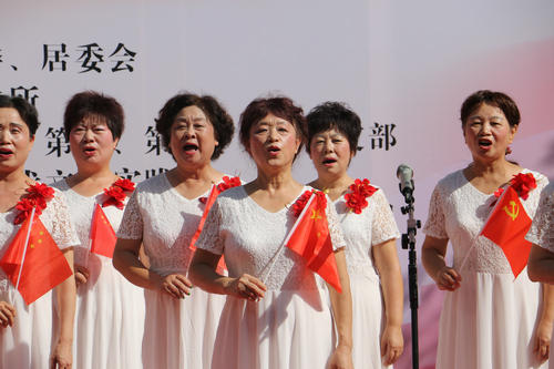 9月29日,莲花池街道羊大山社区在广泽上城小区大门处开展“党群共筑同心梦、家国齐庆话重阳”庆祝活动,为辖区老人及其他居民送上歌伴舞《南湖的红船党的摇篮》等12个精彩的节目。