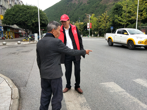 在狮子桥的周围的小巷子里,统战部文明志愿者积极清理牛皮癣,撕掉乱张贴的小广告,捡起地上乱扔的垃圾。用实际行动带动周围的居民,商家懂文明、讲文明。在奢香广场附近的各人行道处,穿着红马甲的统战部文明志愿者来回巡视,对行人进行文明出行劝导,耐心讲解交通规则、帮助年老体弱者安全过斑马线。在路口统战部文明劝导员们始终面带微笑,通过现场教育、纠正、引导等方式,开展文明礼仪宣传劝导,让安全、文明出行深入人心。