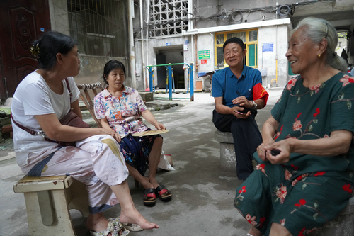 | 廉情信息员在院坝与居民聊天收集廉情信息 |