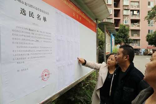 四川新闻网消息(杨尚威 记者 程海英)当前,泸州市龙马潭区区、镇两级人大换届选举工作正有序开展。10月22日上午,在龙马潭区莲花池街道关口社区,工作人员把《选民名单公告》和选民名单整整齐齐地贴上宣传栏,随即引来周边群众前来看榜。