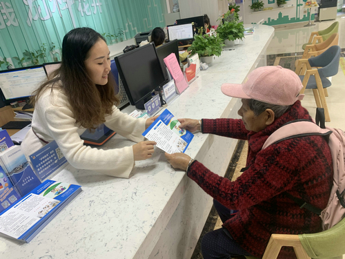 | 社区工作者陈巧云为居民宣传社保政策 |
