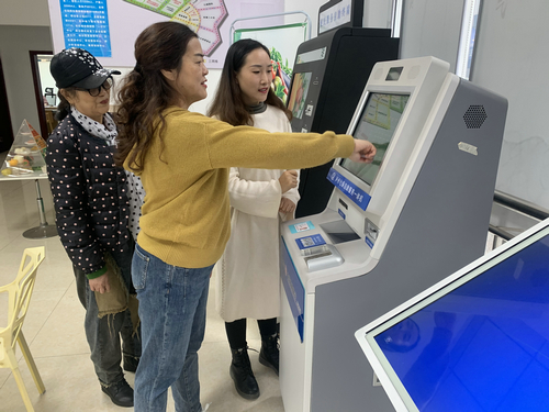 | 居民在温馨的龙祥社区便民大厅办事 |