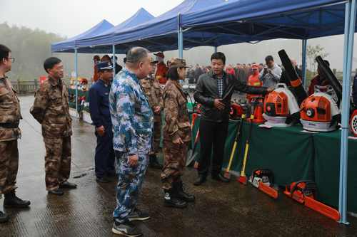 演练前,吴燕晖参观了泸州市国有林场半专业扑火队伍森林防灭火物资装备。四支国有林场半专业扑火队员参加了专业理论培训,并现场进行扑火工具使用操作。