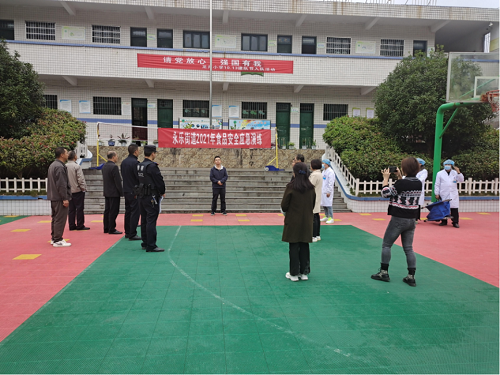 本次演练由街道相关领导带队,与龙井小学、综合行政执法办、社会治理办、派出所、社区卫生服务中心、西华村村委会联合开展。演练过程中,学校校长指挥有序,老师处置应对程序不乱,学生演员表演逼真,演练圆满完成。