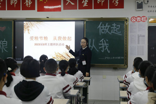 四川新闻网消息(唐千越 文/图 记者 程海英)11月4日,泸州市龙马潭区泸州十二中开展“节约粮食 光盘行动”系列活动,通过节约粮食主题班会、演出自制课本剧、节粮爱粮宣誓、食堂按量打餐、厨余垃圾称重等一系列的活动,积极引导全体师生做“光盘行动”的践行者、示范者、传播者,号召广大师生节约粮食、抵制浪费。