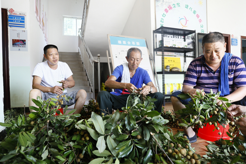 | 桐兴村集体经济公司指导村民将现摘桂圆装箱 |