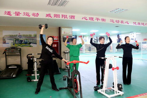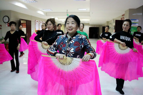 在二楼排练厅里,76岁的雷定翔阿姨正带领着和美天立文化艺术中心舞蹈队的队员们编排着舞蹈,喜欢艺术的她不仅是该舞蹈队的队长,还参加了气功队、走秀队,结交了很多好姐妹。“这两天我们正在排练民族舞蹈《共和国走向未来》,希望通过舞蹈传递正能量,在实现老有所乐的同时,体现老有所为。”