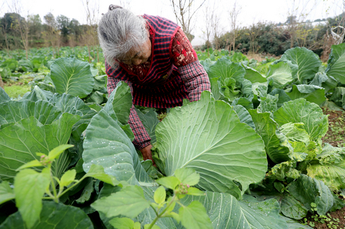 | 种植户正在收割新鲜的莲白菜准备装车 |