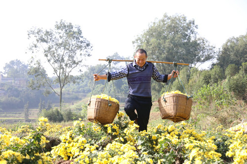 “今年大丰收啦,生活更有盼头啦!”立冬时节,黄桷村10多亩的金丝皇菊迎来采摘期。在久之瑞家庭农场菊花基地内,农场主曾永久夫妇边忙着接待前来采花的游客,边指导工人采花、烤花。