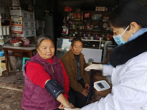 12月3日一早,特兴街道走马村卫生室村医生李多平就来到了村民肖天贵家,回访夫妻二人血压、血糖控制情况,并宣传一些日常保健知识,增强其健康意识。