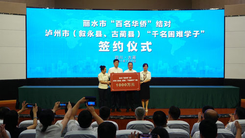 7月9日,随着10名丽水籍侨领与四川省泸州市叙永县、古蔺县学子签约,标志着丽水百名华侨结对千名泸州乌蒙山区学子行动正式启动。古蔺县在读品学兼优且生活贫困的533名学子每人每年收到结对华侨2000元学金,连续结对帮扶5年。结对期间,资助人还将通过多种途径了解结对学生的学习生活情况,加强与结对学生的沟通联系。古蔺县职高学生余欢说:“我最大的目标就是好好学习,努力考上理想的大学,用优异的成绩来回馈他们的爱,用实际行动回馈社会对我的关心。我会以浙江的叔叔阿姨们为榜样,效仿他们的善举去回报社会,将爱的接力棒传递下去。”